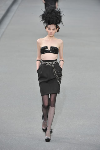 10. Escolher este último look, numa estação não muito inspirada, foi uma tarefa dura. Vi e revi os desfile uma dezena de vezes. Para não repetir a Lanvin (ah, aqueles drapeados…) e levando em conta que a volta do tailleur está em pauta, acabei escolhendo um look da Chanel. Não que eu não tenha gostado da coleção do kaiser Karl – que foi jovial e fresca, com transparências, rendas e texturas artesanais enfeitando as peças – mas é que não vi nada de tão inovador ali. Foi bonitinho, e só.