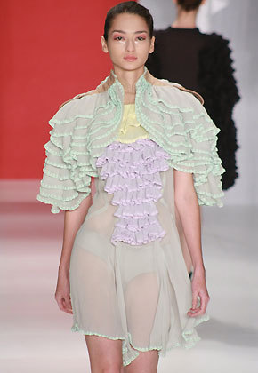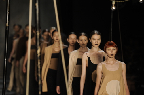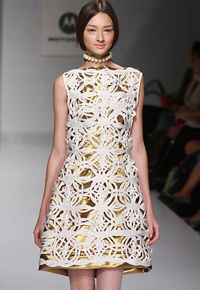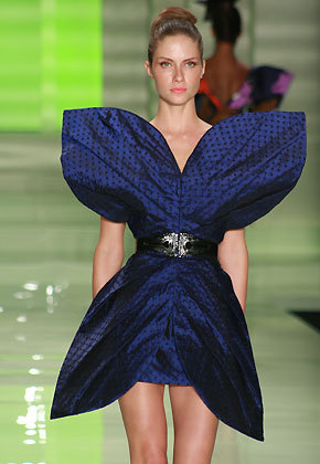 NELSON LEIRNER – Oskar Metsavaht conseguiu alcançar um status de arte ao transformar a roupa em forma escultórica. O próprio feltro modifica totalmente o corpo em escultura. O volume que você pode adquirir com o feltro é diferente do que com a seda, que é mole, porque ele é rígido e difícil de usar. A Maria Bonita captou a Lina [Bo Bardi] arquiteta, não a Lina ligada à arte popular. Gostei dos geometrismos, dos espaços vazados, das sobreposições, que me lembram [Lucio] Fontana [artista plástico]. Existe o estilista do show e o que pensa na pessoa, como a Daniela [Jensen, estilista da Maria Bonita]