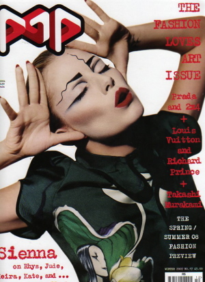 A nova edição da Pop já está nas bancas, com Sienna Miller irreconhecível na capa, graças ao make-up gráfico de Peter Philips.