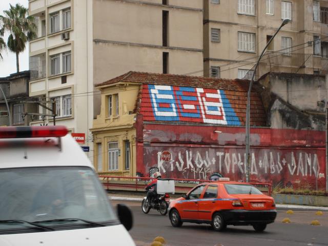 A foto acima, exibida no blog do artista, é de um graffiti feito aqui no Brasil, em Porto Alegre, entre um toró e outro. (Eta tempinho chato desse nosso verão, heim!)