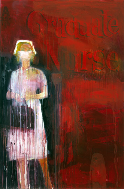 Graduate Nurse, acima, faz parte da série “Nurses” de Richard Prince, inspirada nas capas das novelas baratas, vendidas nas bancas de jornais, também chamadas de pulp fiction.