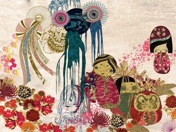 “Misturamos a estética clássica das gravuras e pinturas japonesas (Angá/Hokussai e sumiês), com a modernidade de traços inspirados na designer Yuko Shimizu”, diz Rogério Hideki.